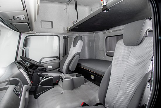 The new High Roof Cab is the largest ever built by UD Trucks. An impressively spacious, walk-through cab is equipped with upper and lower bunk beds for shared long-distance assignments.